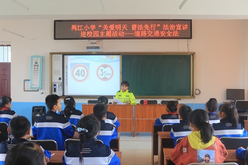 道路交通安全是学校安全教育的重要内容。为了普及道路交通安全法,提高学生、校车驾驶员的安全法律意识,9月23日,两江小学召开了“关爱明天,普法先行”法制宣讲进校园主题活动。