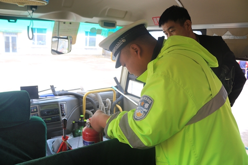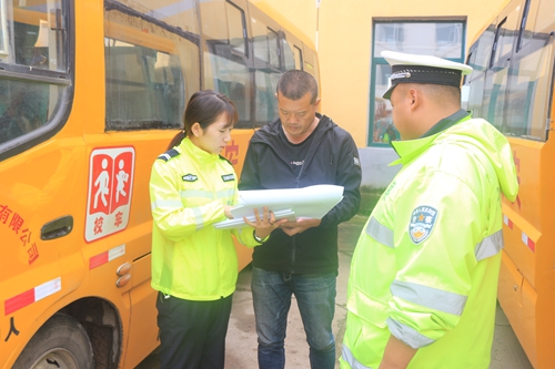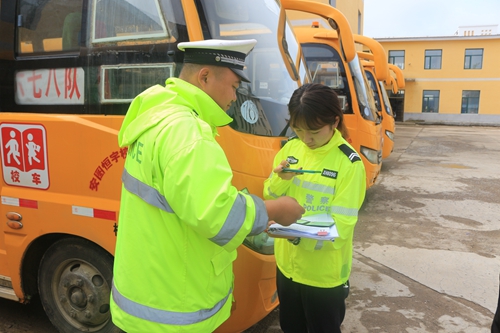 讲座结束后,王爱玲、宋修坤两位警官来到两江小学校车停放处,对校车司机进行了检查指导,强调校车司机一定要遵守交通法,时刻绷紧交通安全这根弦,平安接送学生,确保零事故,同时还检查了校车司机的驾驶证和校车车况、安全设施是否齐全等,并让校车司机签了安全协议。
