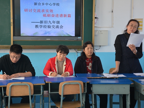 为了提升初中教师教育教学水平,及时汲取毕业班先进的教育教学经验,营造良好教学研究氛围,促进新老教师间的交流,增强教师团队凝聚力,新合乡中心学校初中部于10月22日下午进行了以“研讨交流求实效,砥砺奋进谱新篇”为主题的教学经验交流会活动。