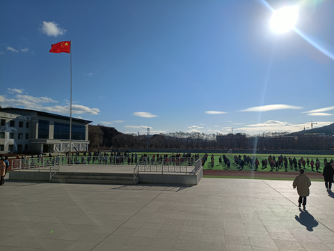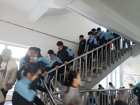 随着警铃的响起,学校领导、老师迅速组织学生撤离教室。撤离过程中,同学们一手捂住口鼻,一手护住头部,在老师的引导下,有序地沿东、中间、西三个楼梯疏散,撤离到学校操场。其中,组织疏散的老师还提醒撤离位置靠前的学生迅速撤到安全地点,为靠后的同学留下逃生空间。从警报响起到390多名师生就位于安全地点,整个逃生过程仅费时2分30秒,此次的疏散演练的效果显著,充分显示了学校应对突发事件的快速处置能力。