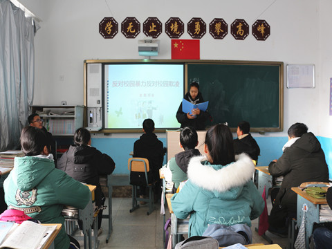 为了预防校园校园暴力欺凌事件的发生,深入开展“反校园欺凌”活动,12月14日,两江镇中学政教处布置各班主任再次进行摸底排查,认真了解各班是否存在校园欺凌的事件或者苗头,并要求各班统一组织开展以“反校园暴力欺凌”为主题的班队会活动课。