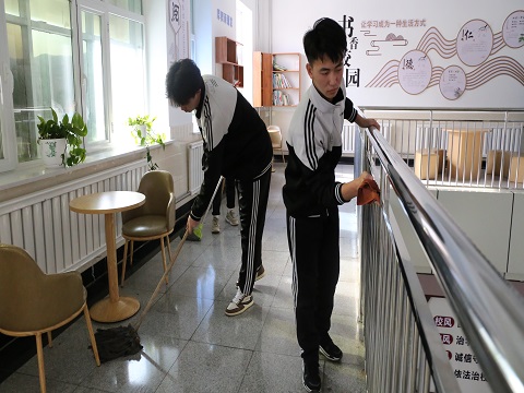 疫情就是战情,为创造安全卫生的校园环境,学校安排专人每天定期消毒、通风,保证室内空气清洁,班级做好每日五次的环境清扫,保障班级、走廊、宿舍卫生清洁,避免病毒传播,筑牢校园卫生防线。在加强校园卫生管理的同时,学校要求总务处做好口罩、消毒液、测温仪等疫情防控物资的储备,全力保障防疫物资到位,以期实实在在的为师生安全保驾护航。