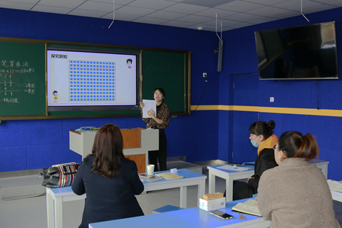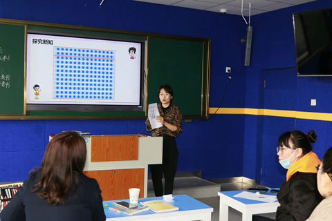 在课堂教学展示环节,两位教学新秀历时一天分别出课3节,讲授内容为数学三年级下册《两位数乘两位数》、数学四年级下册《小数的意义》和数学五年级下册《长方体的认识》。之后,教研人员聚集在一起进行磨课、研课,从参赛教师的教学语言、教学知识点的衔接、教学重难点的突破、信息技术的合理使用等方面进行了全方位的指导。