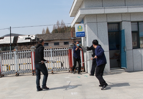 本次演练重点模拟了学生在校期间有“可疑人物”趁大门敞开强行闯入学校的的突发状况。学校安保人员发现“可疑人物”后言语制止无效,见“可疑人物”拿出凶器,便立刻将其控制。学校安保人员利用钢叉、警棍、盾牌等相关防范物品,迅速组织力量对“可疑人物”进行围困,最终在保安和学校教师的通力协助下擒获了“可疑人员”,制止了外来人员暴力事件的发生。