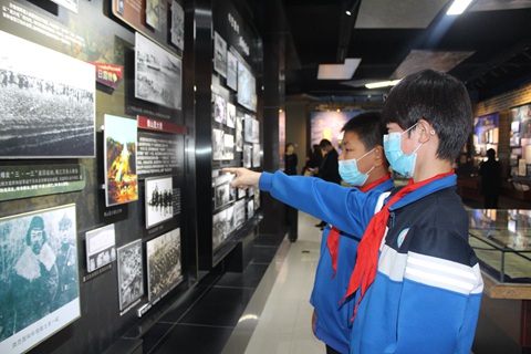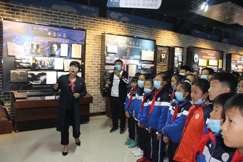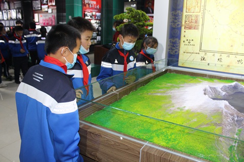 第二站:安图县历史展览馆和爱国主义教育基地。参观过程中,为更好展现安图县发展概况和县城魅力,讲解员解芳以安图概况、古代安图、近代风云、峥嵘岁月、崭新时代、改革开放、安图发展等七个部分讲解,同学们看到众多珍贵图片、多件珍藏品和实物,借助沙盘、场景复原、触摸屏、纪录片等展陈手段,全面展示安图从古到今的历史变迁和建设发展成就,经济社会发展和党的建设的重要事件、重要节点,各个时期的历史风貌,生动再现安图人民不屈不挠、牺牲奉献的伟大精神,从而增强学生们的自信心和自豪感,激发爱国爱家乡、建设美好安图的热情。