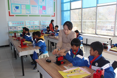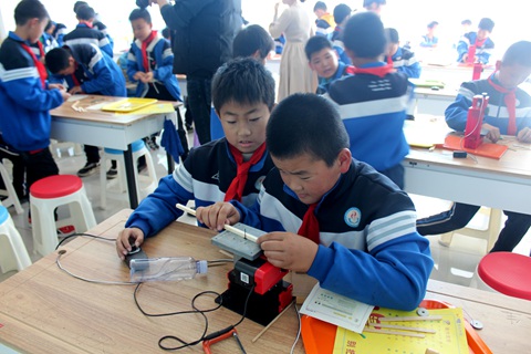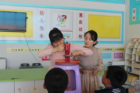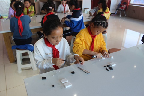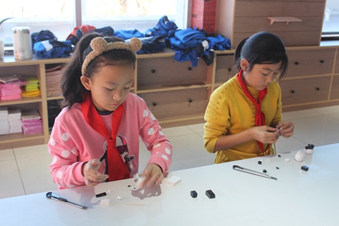 第三站:安图县青少年活动中心。午饭过后,两江小学的学生们抵达县青少年活动中心,68名学生分成男女两组,分别体验了县少年宫姜梅花、张楚英、郑夕英、谢添棋四位老师的陶艺和科技小制作制作两节特色课程。陶艺课上,女孩子们通过自己动手亲自体验,感受到陶艺中源远流长的文化,感受到艺术对心性的考验。在两位老师的悉心指导下,不一会儿,孩子们手中的陶艺作品已经有模有样了。科技小制作课堂上,男孩子们两人一组,先是认真地观看并聆听了两位老师的讲解,随后便动起手来,用工具制作起木质悠千模型,这一个个小小的“木匠师傅”,在两位老师地指导下,都圆满地完成了自己的作品。
