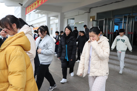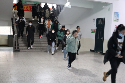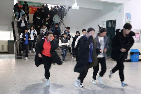 上午9点10分,伴随着刺耳的警报声,演习正式开始,学生在老师的指挥下,采用捂住口鼻,弯腰低姿等方式,有序的从教学楼内快速疏散,学校教师也在各转弯处指引疏散路线,整个疏散过程自始至终井然有序,仅用一分二十三秒的时间。