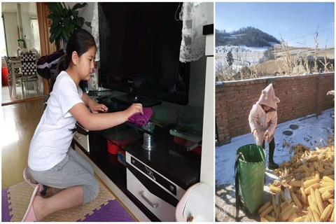 疫情期间除了学习活动,老师还格外注重培养学生的动手能力,让孩子们做一些力所能及的家务活,例如拖地、刷碗、淘米、做水果沙拉、洗袜子等,从小懂得为父母分担,乐于为家人及周围人服务做贡献,努力做一个有价值的人。