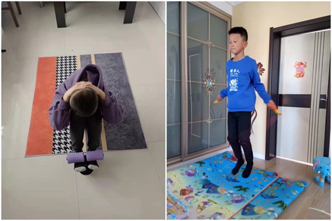 疫情期间减少出行,可以有效遏制疫情的进一步扩散传播。但是,长时间居家缺乏运动又成为新的问题。学校体育老师根据非常时期场地不充分,器材不足等情况,为同学们制定了居家运动指南,利用图片、文字及视频的形式进行指导说明,例如每日跳绳、绳梯脚步练习、广播体操等,既能让孩子们的居家学习不显无聊机械,还能锻炼身体,增强体质,缓解视觉压力。班主任也会不间断的督促孩子们多进行体育锻炼愉悦身心,丰富业余生活,而不要沉迷于手机电视等不利于眼部健康的事情上。