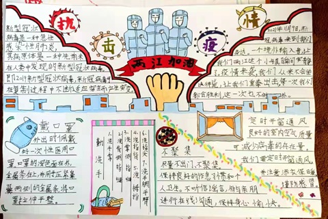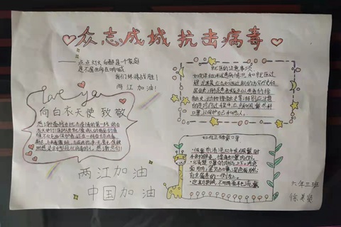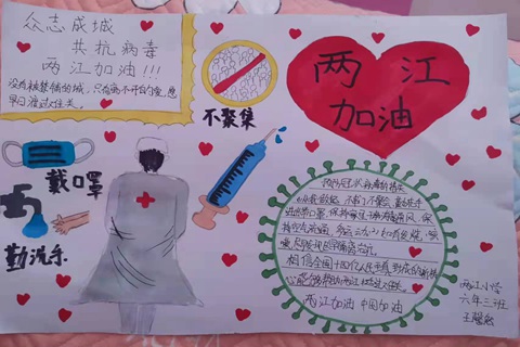 孩子们在防控疫情期间还亲自动手制做了好多触动人心且精美的手抄报、视频等正能量作品,他们在用自己的方式关心着疫情时情,助力两江!为家乡加油!