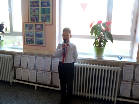 迎着朝阳,沐着和风,在激昂的国歌声中,升旗手振臂一挥,鲜艳的五星红旗徐徐展开。在初升的阳光映照下,国旗迎着风缓缓飘扬起来。四(一)中队队员代表以《热爱运动,拥有健康体魄》为题,发表国旗下讲话。他表示,运动是身体的语言,运动不但有益于身体健康,还能帮助同学们培养优异的道德品质,开发智力,提高心理素质,陶冶情操,发展个性和增强适应未来社会的各种能力。他呼吁全体同学投入到体育运动中来,增强体魄,锻炼意志,做一名全面发展的学生。