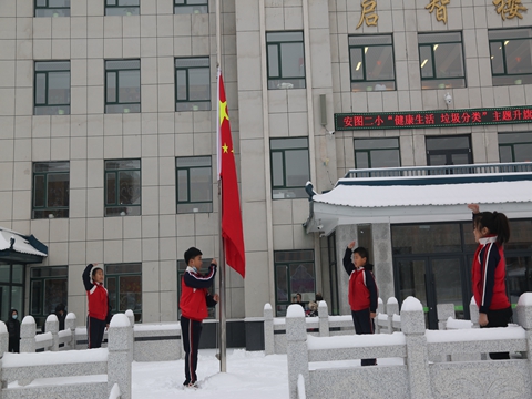 伴随着雄壮的国歌,五星红旗冉冉升起,国旗在白雪的映衬下显得更加鲜艳夺目。四(二)中队学生代表作了题为《健康生活 垃圾分类》的国旗下讲话,他讲述了垃圾分类对环境保护的重要性,并向同学们介绍了可回收垃圾、厨余垃圾、有害垃圾、其他垃圾四类垃圾的分类标准。他号召同学们,垃圾分类,从身边做起,从你我做起,力争减少每天的垃圾量,真正落实垃圾分类,为校园的绿色环保,为地球的环保事业献出微薄之力。