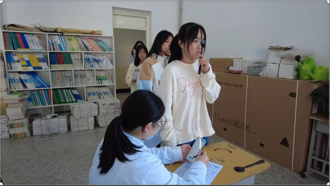 体检当天,以班级为单位,在班主任的带领下依次进入指定区域排队等候,配合医务人员完成相应的体检工作。体检的主要项目是测量血压和抽血检验,目的是排查学生心脏病、肝炎、肺结核等疾病隐患,为师生营造一个健康和谐的校园环境。
