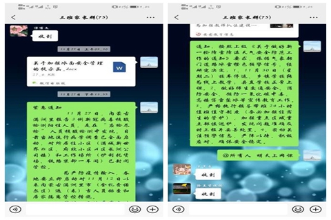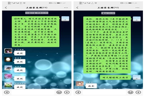 休息、停课期间,两江小学校长牛建军带领校领导小组成员踏查校车路线,有针对性地开展校车驾驶员和随车照管员冬季安全教育培训,强化校车安全意识、责任意识,加装防滑设施,应对雪后运行安全。增派值班人手,24小时值守,开展极端天气条件下安全隐患大排查大整改工作,加大对校内供电、供水、供暖等设备设施和积雪压塌隐患的巡查力度,坚持不留死角,随检查,随处理,全面消除雪后安全隐患。在学生到校前,对建筑物出口、房檐、室外楼梯、师生途经的校门、校内道路等部位,进行清雪除冰工作,采用各种防滑、防高坠措施,防止师生受到意外伤害。同时,还多次利用家校微信群,组织开展了应对极端恶劣天气安全教育,普及安全防范知识,强化安全防范意识,提高师生及家长的自我防护能力。12月2日,雪后复课首日,两江小学召开班子会,研判形势,对极端天气复课后安全工作进行再布置、再强调。