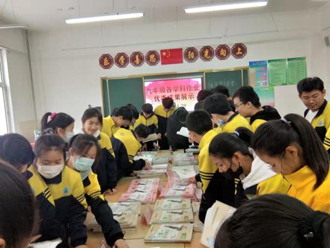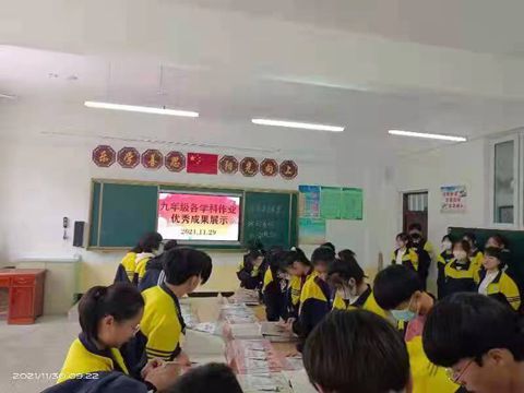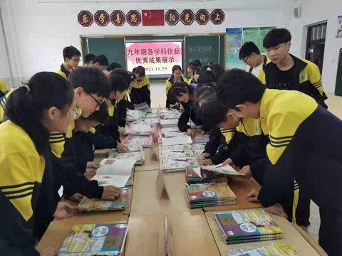本学期开学初,李娟主任对本次活动进行了布置,要求各班学生平时认真积累、精心准备,准备阶段为时两个月,最后各班选出3---5名同学参加展示评比活动。展示评比的内容包括:学生的语文各项积累、日记、作文等,英语笔记,数学三维,物理三维、化学三维及道法教材、历史教材等等。在学生午休期间,*年全体学生以班级为单位在各班主任的带领下有序的进行了参观学习。一本本字迹整洁、书写漂亮、正确率高的作业启发孩子们做作业要认真、细心,做完作业要认真检查,及时改正错误。展示后,由九年级各个学科教师担任评委,评出一等奖14人,二等奖35人,三等奖49人。