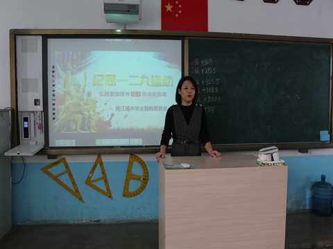 为了纪念“一二·九”学生爱国运动,弘扬爱国精神,珍惜美好生活,两江镇中学开展了以“弘扬爱国精神,传承民族魂”为主题的班会活动。