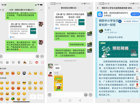 利用“美篇”发放《预防中小学生沉迷网络游戏致家长的一封信》。政教主任*飞制作的美篇《预防中小学生沉迷网络游戏致家长的一封信》从依赖心理、虚拟世界、价值观念淡化、崇尚暴力等方面详细介绍了青少年上网成瘾的原因及危害,并提出倡议:我们将和广大家长一起,共同优化网络环境,增强学生的网络安全意识,培养学生绿色上网、文明上网的良好习惯,构建安全健康的网络育人环境。