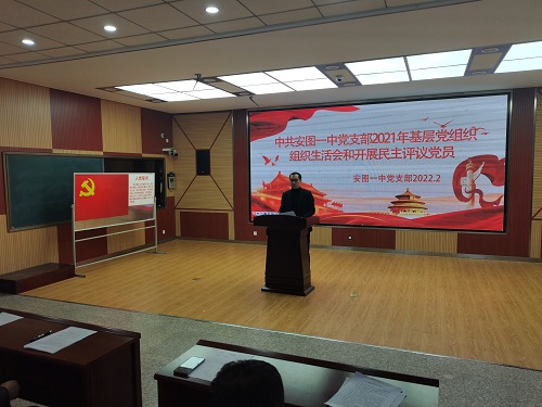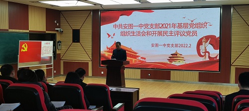 为深入学习贯彻习近平新时代中国特色社会主义思想,学习贯彻党的十九届六中全会精神,不断推进党的建设新的伟大工程,根据党章、《中国共产党组织工作条例》、《中国共产党支部工作条例(试行)》、《中国共产党党员教育管理工作条例》和《中共吉林省委组织部转发中共中央组织部关于召开2021年度基层党组织组织生活会和开展民主评议党员的通知》(吉组通字〔2022〕5号)等相关要求;2022年2月24日安图一中党支部开展了组织生活会暨民主党员评议活动。