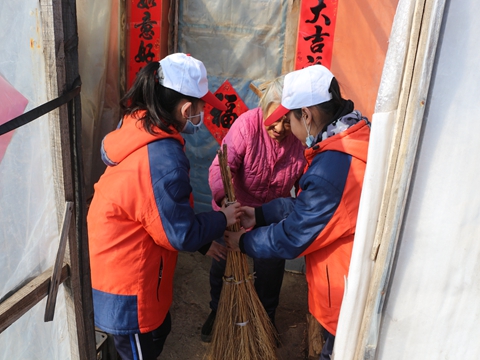 校政教处从五年级两个班级每班选男女生各3人,共计18人,由政教主任刘洪媛、安全主任卢广强和大队辅导员孔德志老师带领,到两江镇老年公寓帮助孤寡老人打扫卫生。来到老年公寓,同学们立刻投入紧张的劳动之中,扫地、擦桌子、清扫院子……不怕脏,不嫌累,经过一个小时的劳动,同学们将公寓的屋里屋外打扫得干干净净。老人们感动地直夸“真是一群好孩子!”同学们也感到无比幸福和自豪,真正体会到“赠人玫瑰,手有余香”的滋味。同时体会到敬老、爱老、助老,是青少年的责任,是中华民族的传统美德。
