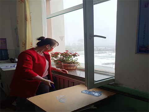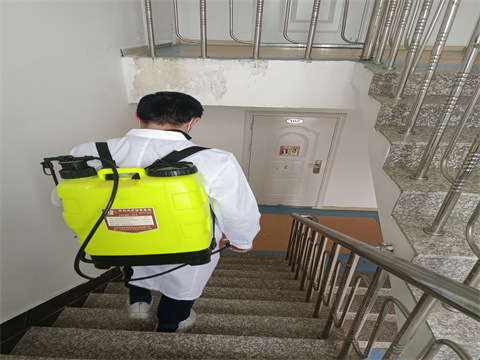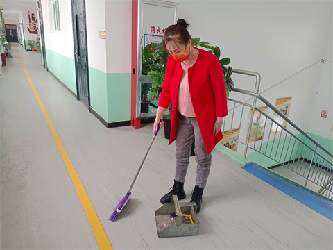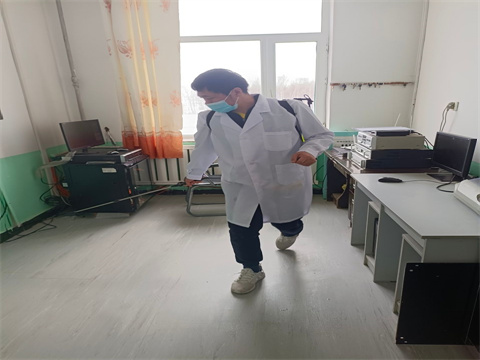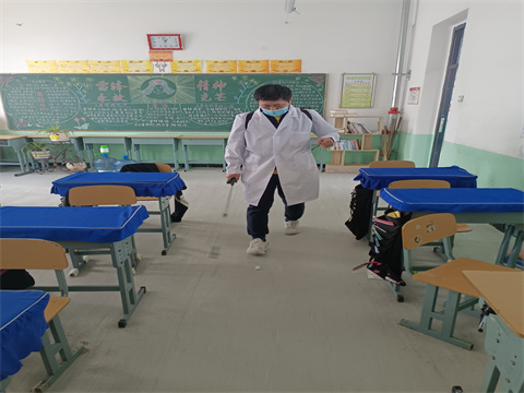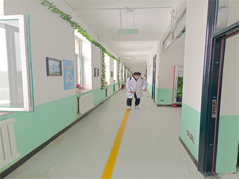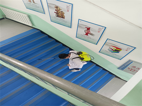 校园里涌动着老师们的身影,大家组织有序,分工明确,全面打扫楼内各个卫生死角,清理地面,确保楼内干净整洁。之后又对教学楼、食堂、周转房、门卫进行了彻底的消杀和通风。虽然只有6名教师,但是大家干劲十足。
