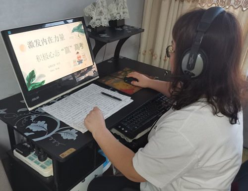 针对学生真实存在的紧张,焦虑和恐惧等情绪,周小敏老师为同学们准备了两个小锦囊,他们分别是“定心”与“定力”,三颗“定心丸”让同学们知道了在居家学习的这段时间里,要获得控制感、平衡感和安稳感才能轻松平稳的度过!在讲座过程中,周老师带领同学们一起学习并体验了腹式呼吸和冥想练习等放松疗法,有效的缓解了学生的焦虑情绪。针对居家学习可能会产生的迷茫心态和混乱作息,周老师引导学生要设定心中的灯塔,建立目标合理规划每天的学习!并送给学生“定力”这个小锦囊,同时引入“永不言弃”这个视频让学生认识到对自己制定的目标要坚持不懈,功不唐捐,玉汝于成,行而不辍,未来可期!
