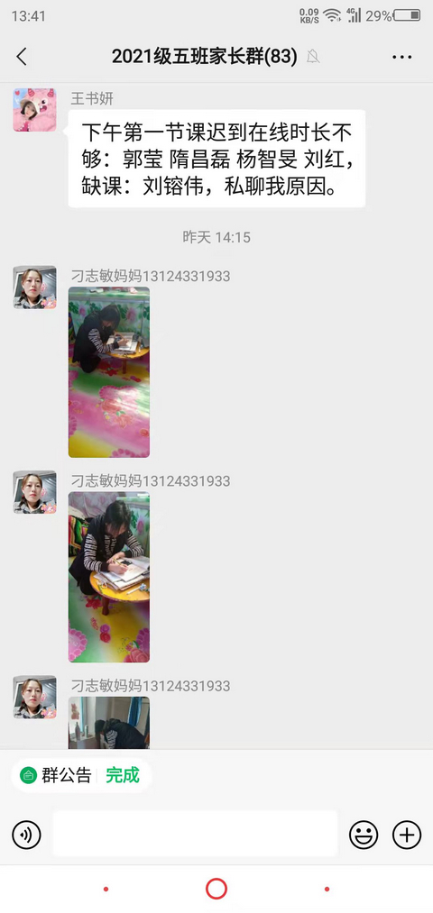 为进一步保障线上教学质量,学校采用实行包保责任制,每三位校中层领导包保一个学年,并确保每天一次抽查听课,调查学生学习中的困难。班主任同样进群听课,方便将每天每节听课情况反馈给家长。任课教师监督,负责学科教学,监督学生到位、发言、参与、学习任务完成。采取当日反馈当日总结的形式,发现问题随时沟通、并落实整改。