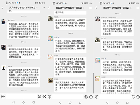 同学们通过收看“天宫课堂”第二课的现场直播,不但丰富了线上学习期间的课余生活,而且开阔了视野,增长了科学知识,追寻“科学梦”、实现“航天梦”的热情也得到了激发。未尽,收获满满!