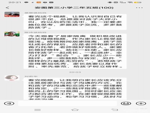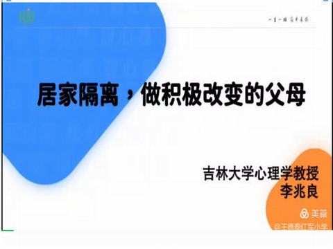 为帮助家长走出焦虑情绪,平和应对孩子居家学习生活。王德泰红小学结合教育局的统一工作要求,组织全校班主任及家长收看由安图教育推送,吉林大学李兆良教授主讲的《居家隔离,做积极改变的父母》主题讲座,同时组织班级家长进行学习分享交流。