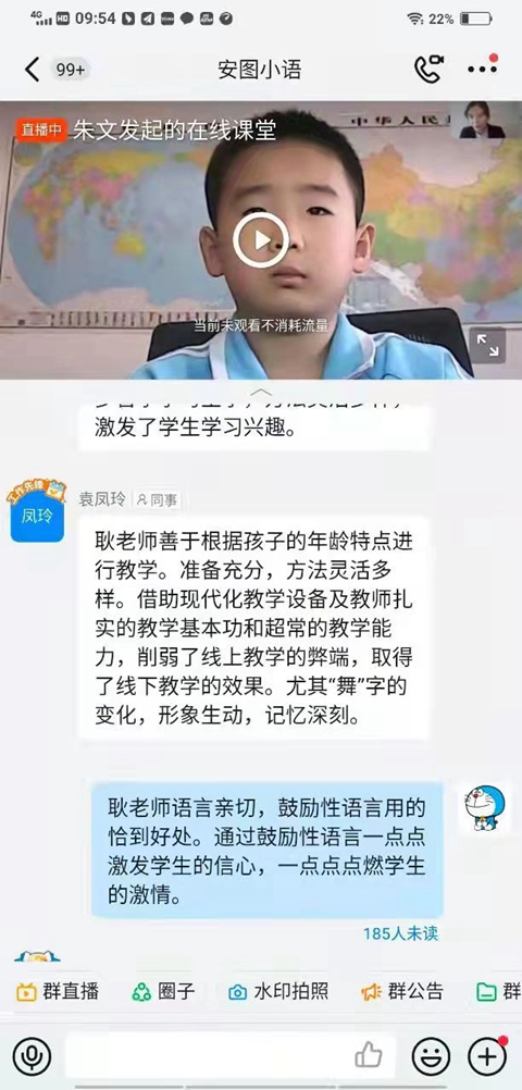 全体语文教师在线聆听了李怡萱、曾祥玉、耿琳、朱文、刘鑫五位老师的教学展示,每堂课的教学设计,环节层层递进,稳扎稳打。教学方法多样,师生的有效互动激发了学生的学习积极性,为学生今后识字奠定基础。听课后,教师们感触颇多,积极在交流群发言,认为五节课,五位老师在有限的线上课堂时间,精心设计教学内容,注重学法指导,关注兴趣激发,采用字理识字、看图识字等多种方法指导学生识字写字,不仅为线上低年级识字教学做了很好的典范,也引发大家对语文教学怎样扎实有效有了更深刻的思考。
