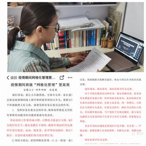 吕美英老师分享的《疫情期间班级“网格化管理”更高效》让全体班主任收获了十四个字——提好要求、做好指导、做好监督评价。接着,她重点解读了这十四个字如何落地。分享内容可操作性强,非常落地。