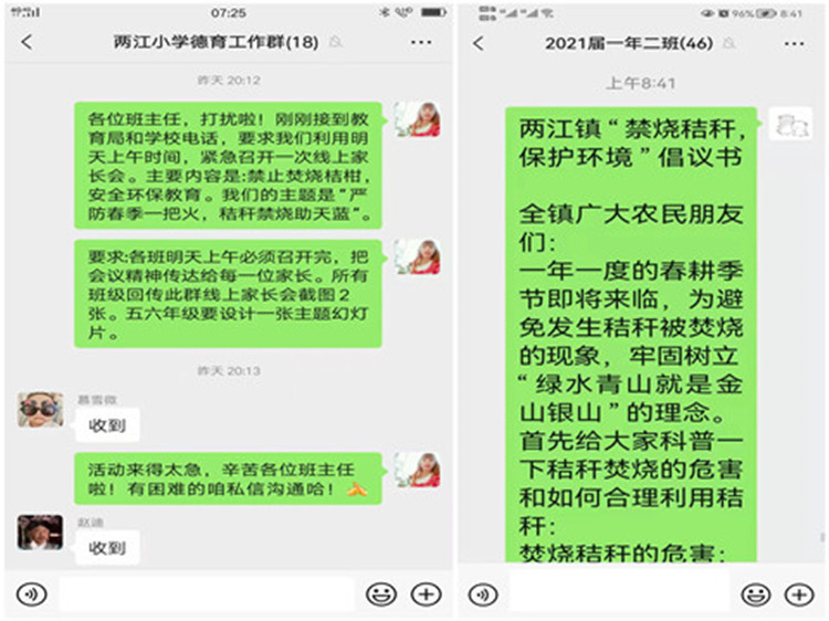 春季以至,燃烧秸秆问题又摆在了眼前。为了提高农民的禁止燃烧秸秆的意识,自觉的不烧秸秆,两江小学政教处组织全校师生和家长通过钉钉平台开展了“严防春季一把火,秸秆禁烧助蓝天”主题活动。
