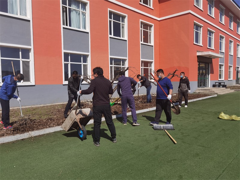 劳动分为男女两组,男教师负责操场和校园果园、菜园等土地平整和垃圾清理;女教师则负责综合楼、教学楼的卫生清扫。不到3个小时,楼内窗明几净,焕然一新。校园里,果园、菜园泥土翻新,干净整洁,这一切与渐浓的春天的气息一样,让人心情舒畅。