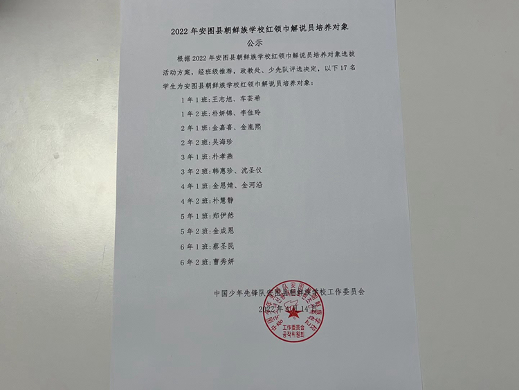 为了丰富朝鲜族学校少先队员们线上教学期间的学习生活,同时让少先队员们通过了解祖国、了解家乡,激发热爱祖国、热爱家乡的情感,安图县朝鲜族学校于4月11日举行了红领巾解说员竞选活动。