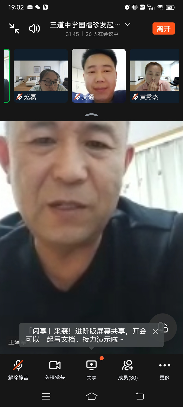 本次的会议主要是强调了疫情期间的注意事项,明确了下阶段教学任务,坚守育人初心,齐心协力,共克时艰,平稳有序的开展线上教学,为三道中学的莘莘学子保驾护航。