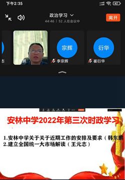 2022年4月19日下午第六节课,安林中学按照计划组织了2022年第三次时政学习,集中学习了“全国统一大市场”相关理论内容。