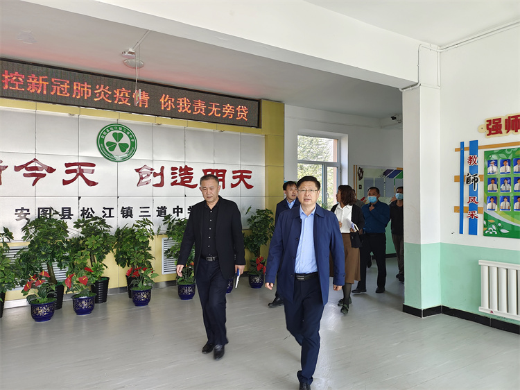 4月20日上午,教育局党组书记秦洪华局长,人事科刘兆斌科长一行到三道中学进行检查和慰问,检查项目包括学校的安全防火设施、教学楼和周转房的消杀情况及校园封闭管理,尤其对滞留教师进行亲切的慰问,对防疫物资储及消毒工作记录重点进行了察看,强调要把好防疫关卡,确保三道中学校园安全稳定。