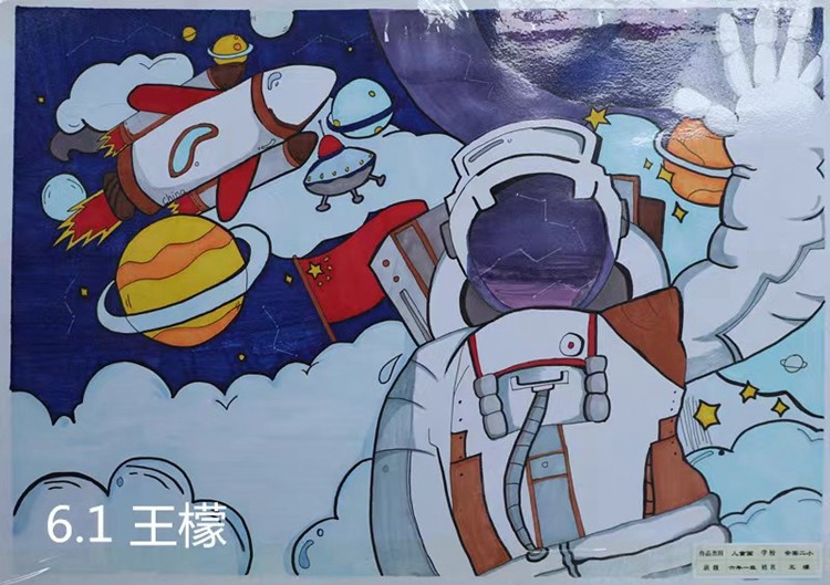 那一幅幅充满着幻想,色彩绚丽、形象逼真,洋溢着孩子天真烂漫情感和大胆新奇想象的科幻画,吸引着孩子们的眼球。