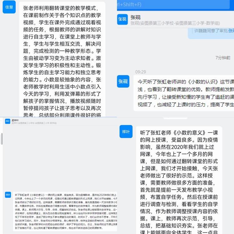 课后,与会教师和领导对两位老师进行了热烈的线上讨论和深入的交流,对翻转课堂如何应用在教学中进行了专业化的引领与点评,有效地解决了老师们在教学中的疑惑,也对怎样上好翻转课起到指导性作用。