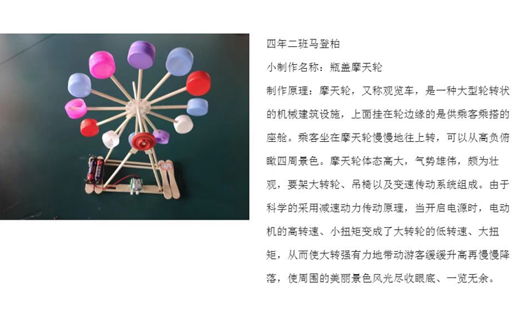 科学组教师又把亲子科技小制作的作品图片制作美篇,在各班级微信群中转发,乐高搭建和科技小制作件件精巧,包含声、光、电、力、平衡、磁等,奇妙的科技小制作深深吸引着每一个孩子与家长。