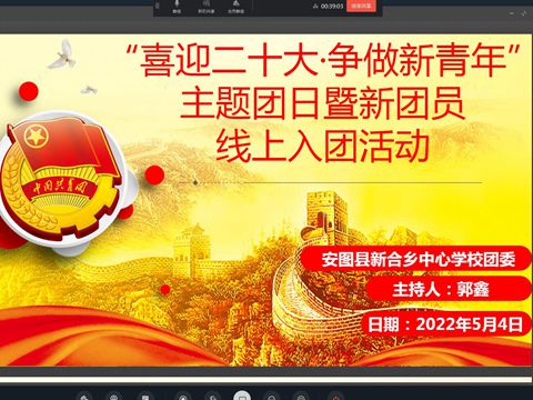 为提高团员对组织的荣誉感和归属感,引导新团员以实际行动展现共青团员先进性,带动广大青年坚定信念、顽强奋斗,以优异成绩迎接党的二十大胜利召开,向建团一百周年献礼,安图县新合乡中心学校于2022年5月4日举办喜迎二十大·争做新青年”主题团日暨新团员线上入团活动。