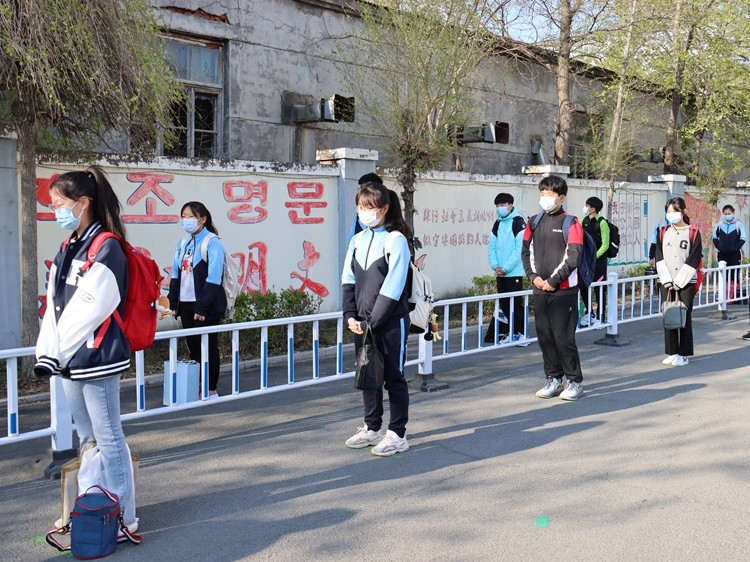 为了保证九年级师生复课能够顺利进行,5月8日,朝鲜族学校首先进行了复课演练活动。安全处主任韩东辉提前安排学校教师负责测温、登记、监督学生行走间距等工作,学生在测温处间隔一米整齐排队,同时根据演练活动及时发现并完善了学校防疫方面存在的问题。5月9日六点四十五分,朝鲜族学校九年级学生在顺利完成测温、登记环节后进入教室,打扫完卫生后开始了线上线下学习内容的衔接任务。针对学生午餐就餐相关事项,朝鲜族学校食堂管理员也与中央食堂进行了沟通,尽可能保证学生在校期间减少与校外人员接触次数。
