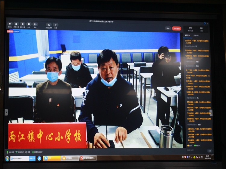 为进一步强化防疫意识,增进家校沟通,有效形成疫情防控教育合力,保障各位家长和学生的生命健康,5月17日晚,两江小学召开了线上疫情防控暨线上教学全校家长会。会议由副校长李贵柱主持。校长牛建军、党支部副书记张宝军、政教主任姚秀军、全校16位班主任教师和486名学生家长参加了此次会议。