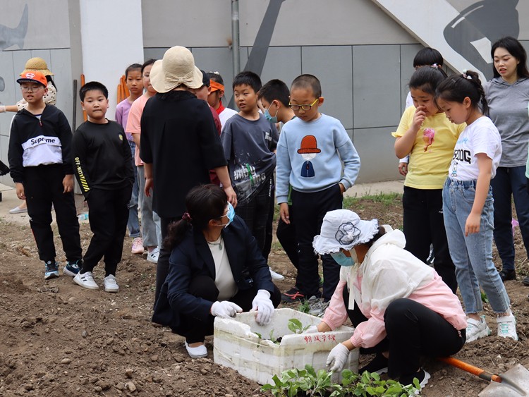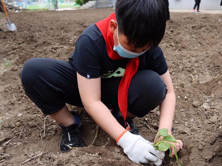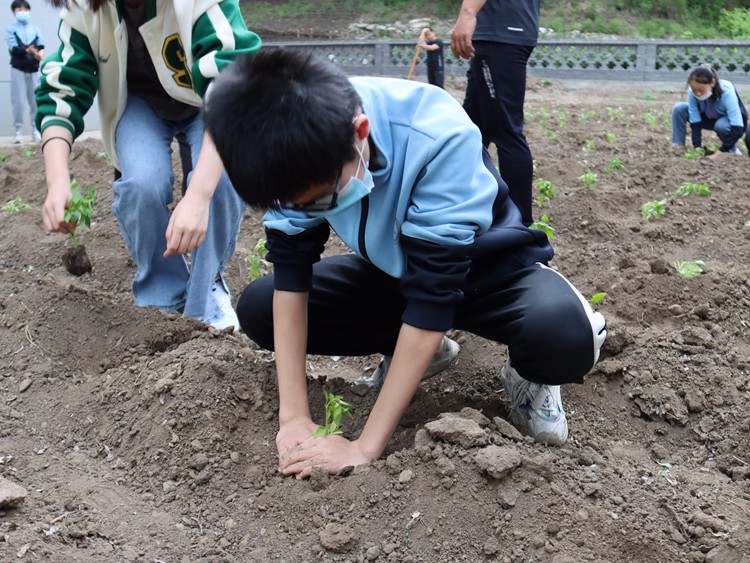 “把农作物幼苗捧在手心里,走到地垄上已经挖好的坑旁边,放入幼苗,之后压实周围的泥土就可以了”。5月24日下午,在朝鲜族学校体育馆后开辟的劳动基地里,劳动经验丰富的老师们正在教导学生如何正确种植农作物。