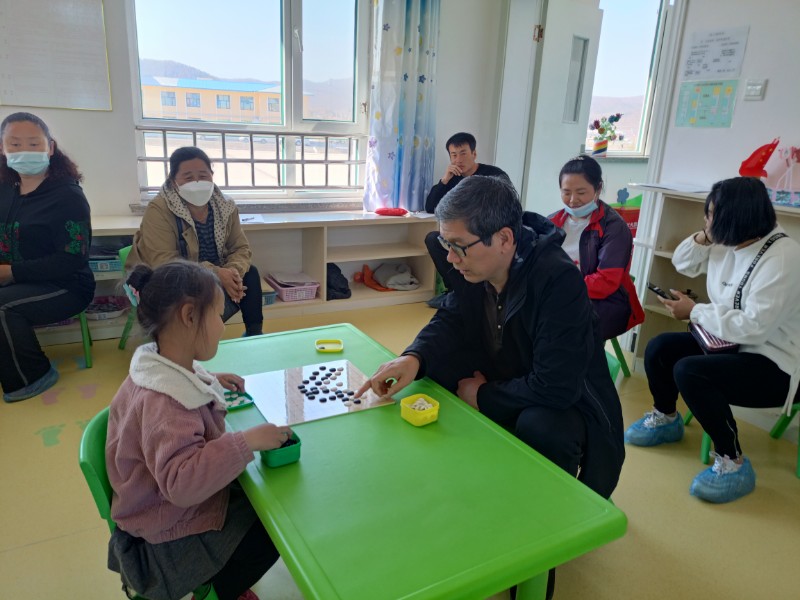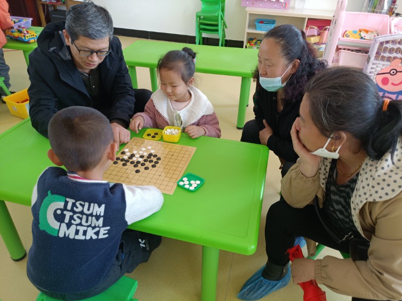 亮兵镇幼儿园营造人人都爱下棋的浓厚氛围,每月举行一次围棋教学小结、每学期举行一次围棋成果展示。呈现围棋——揭秘围棋——创设棋局——领悟围棋,实施一年深得幼儿地喜爱。