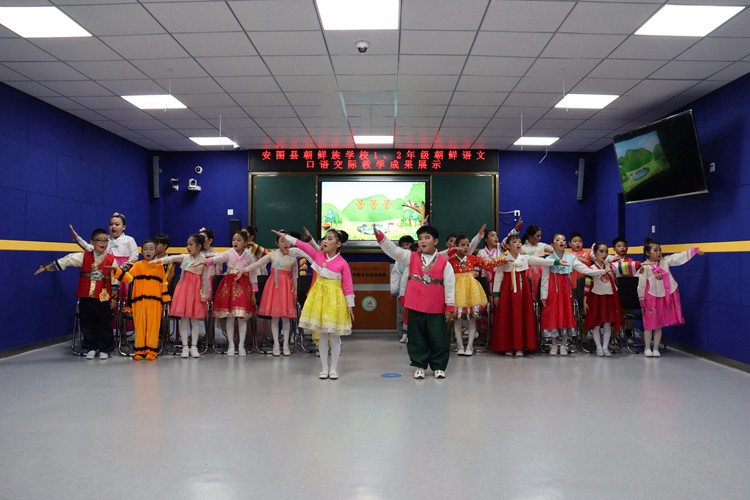 朝鲜语文课程作为朝鲜族学校的特色课程,一直以来就以生动活泼的课堂氛围、寓教于乐的教学形式、别开生面的教学内容深受师生的喜爱。在结束了一个学期的学习后,6月22日,在县教师进修学校的组织下,朝鲜族学校一、二年级的孩子们进行了主题为“我的最佳节目”的朝鲜语文口语交际教学成果展示活动。