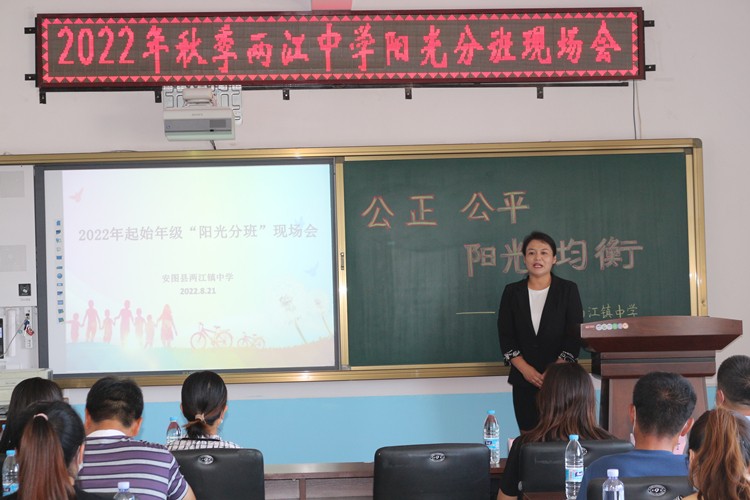 两江镇中学阳光分班整个过程规范、透明。充分体现了两江镇中学均衡教育的公正、公开。实现了家长放心,孩子舒心,社会满意的良好效果。