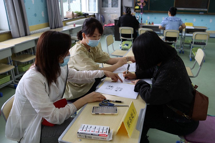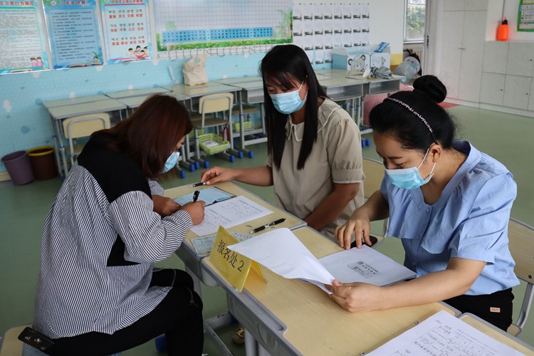 根据县教育局招生工作具体要求,结合疫情防控具体安排,朝鲜族学校在校门口设置了测温点,由两位校警进行测温登记工作。在进入教学楼前,再由学校安排的教师进行入校人员登记工作,切实保证一人一登记,一人一信息。考虑到新生家长不熟悉学校结构,学校领导在在一楼大厅安排引导教师,负责学生家长的引导工作。为了保证新生家长能够顺利完成报名,学校在教学楼内设置了文件打印室、休息室与报名室三个房间,以满足新生家长的需求。在报名室内,设置两个报名点,避免了学生家长出现过长时间等待的现象。负责招生工作的教师认真负责,解释相关政策要求,同时引导学生家长完成表格填写与确认电子版信息登记工作。