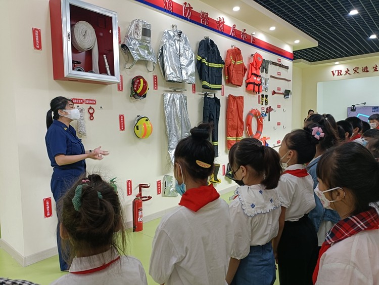 研学中,消防员向孩子们详细介绍了消防服的功能,用通俗易懂的语言讲解了消防安全与自防自救等知识。在消防员的带领下孩子们进行了模拟逃生演练,有效提高了学生在火灾等危险情况下快速逃生的自救能力。