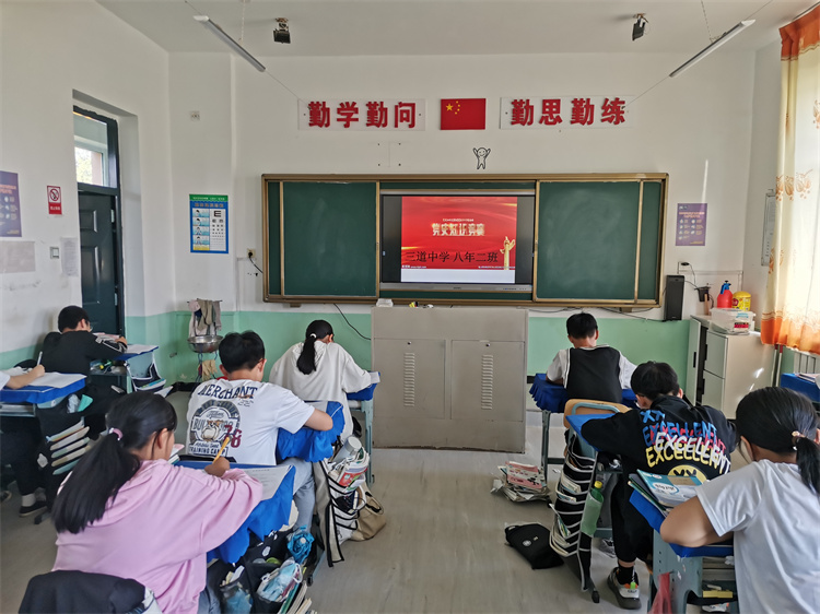 其次选择一节自习课,全校进行党史知识答卷活动,由各班班主任作为监考老师。考试内容以《“三旗三史”百题问题》为主。答题结束后,批卷由政教处负责,用表格形式以班为单位从高到低做好成绩汇总和试卷封存,并把试卷按要求上交县教育关工委。