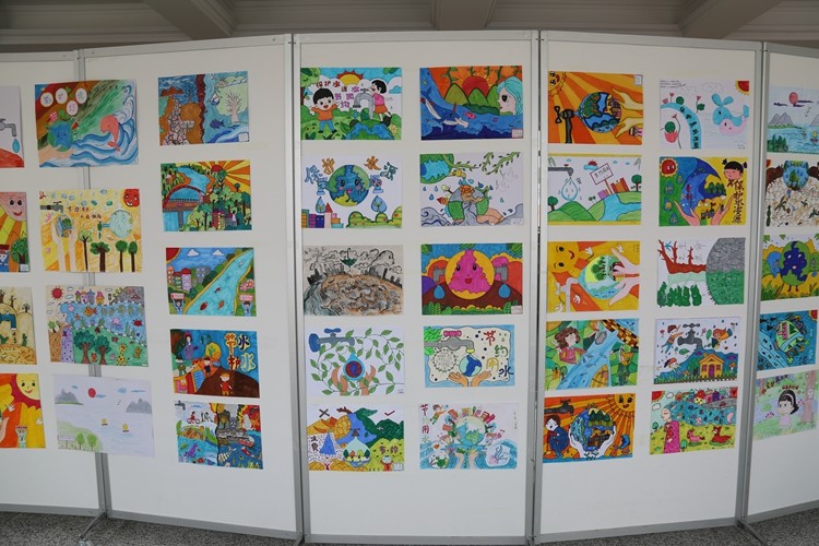 在启智楼四楼正厅一条书画长廊共展出139幅作品,种类包括:书法、绘画、摄影、手抄报等等。孩子们或是用自己的笔墨书写心中的爱河护河篇章,或是拿起彩笔勾画胸中的绿色蓝图,或是用镜头记录下家乡的美景,亦或是奇思妙想制作出一幅幅精彩的手抄报。五彩斑斓的色彩、端正秀丽的字迹,无不透露出孩子们对大自然的热爱,以及争当“护河使者”的热情。